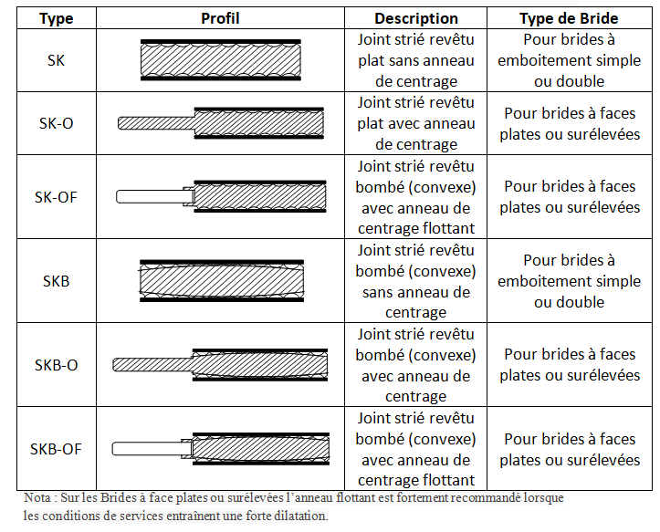 - Les joints striés revêtus permettent de remplacer avantageusement les joints métalloplastiques ainsi que les joints spiralés, leur structure monobloc les rend plus solides et plus facilement manipulables qu’un joint spiralé ;